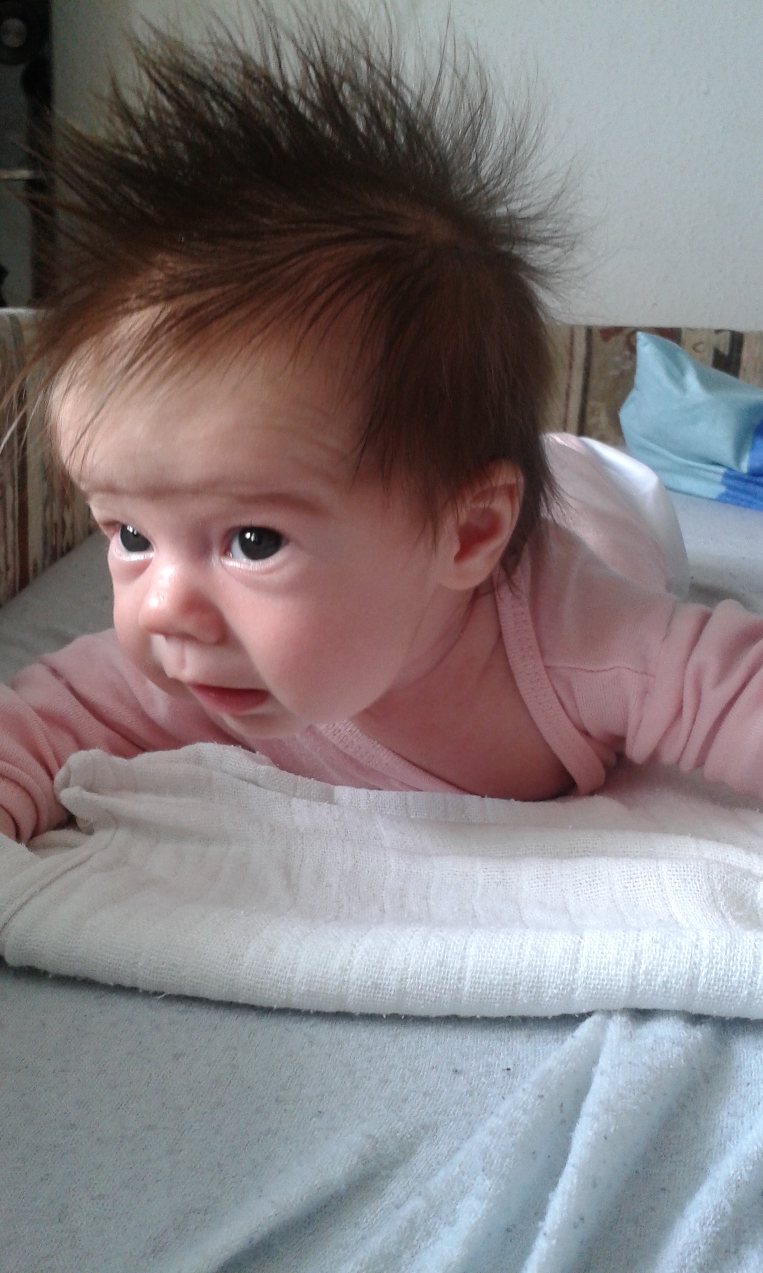 Zoé Rita vagyok. 2014.04.02-án születtem 3480 grammal és 54 centiméterrel. A hosszú anyakínzás után végül is császármetszéssel hoztak a világra. (már akkor is én diktáltam, mostanra már kész kis terrorista lettem itthon :) ) Anyukám sokat szokott nekem mesélni a születésemről és mindig emleget egy nénit, aki végig segítette a hosszú-hosszú órákon a szülőszobán. Azt is mondta, hogy meséljek magamról. Szerdán már 8 hetes nagylány leszek. A súlyom már 4650 gramm, igazi haspók vagyok, hála Istennek Anyának van teje rendesen, így van mit enni. Szeretek fürdeni, Apa szerint úgy úszkálok a vízben mint egy kis béka, a hajmosástól viszont irtózok. A kedvencem a hajszárító, attól mindig megnyugszom, néha el is alszom közben. :) Egyre többet vagyok fent nappal, este még felkelek négy óránként. Nagyon sokat mosolygok, most már tudatosan, Anyához ragaszkodok a legjobban. Néha kicsit nyűgös vagyok, de akkor Anyuci mellkasán pillanatok alatt elalszom. A szüleimet már megismerem és szeretem is őket nagyon. Háááát ennyi jutott most eszembe magamról. Nagyon köszönöm a segítséget, amit Anyukámnak nyújtott, amíg Én bent időztem.Majd pár hónap múlva megint jelentkezem. Ja, és csatolok pár fotót magamról, mert mondta Anyu, hogy mutassam meg magam!